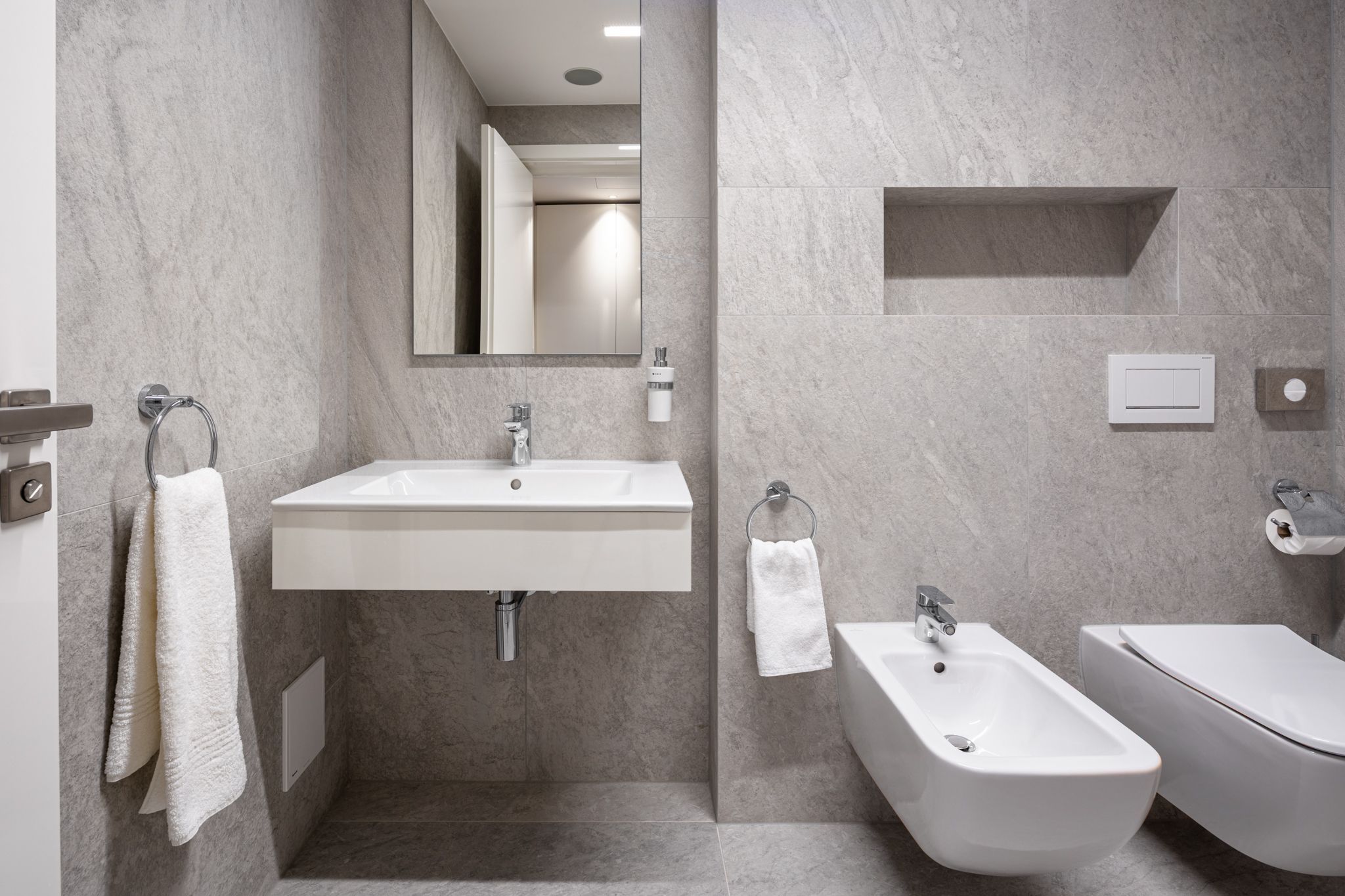 Each room includes an elegant bathroom with a walk-in shower and a coffee and tea set, allowing you to enjoy a peaceful moment with your favorite beverage at any time.