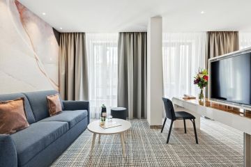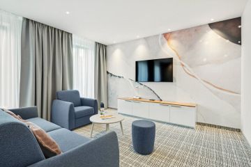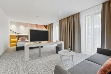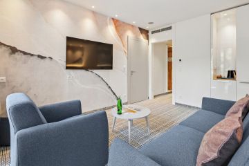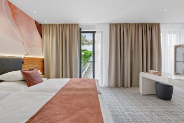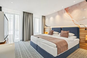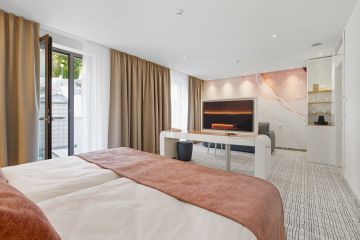 The hotel offers a total of eight Junior Suites, all overlooking a quiet inner courtyard and featuring a private balcony with seating—perfect for relaxing in the fresh air. The rooms are located in the modern St. Joseph Tower, ensuring a high standard of accommodation.