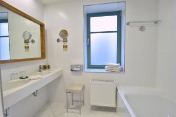 The modern interior consists of two rooms, a bathroom and a separate toilet. The bathroom is equipped with a bathtub for perfect relaxation at the end of the day. The spacious 42 metres² additionally includes a terrace. Above-standard services in the first-class Superior category are a matter of course. Guests also have access to a capsule coffee machine and luxury beauty products.